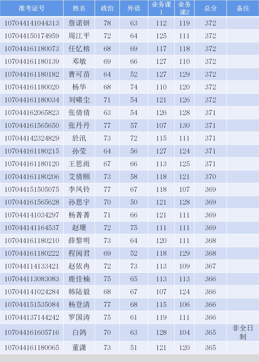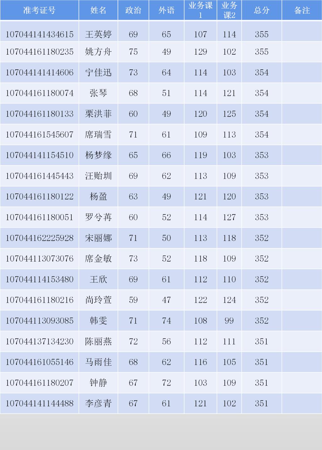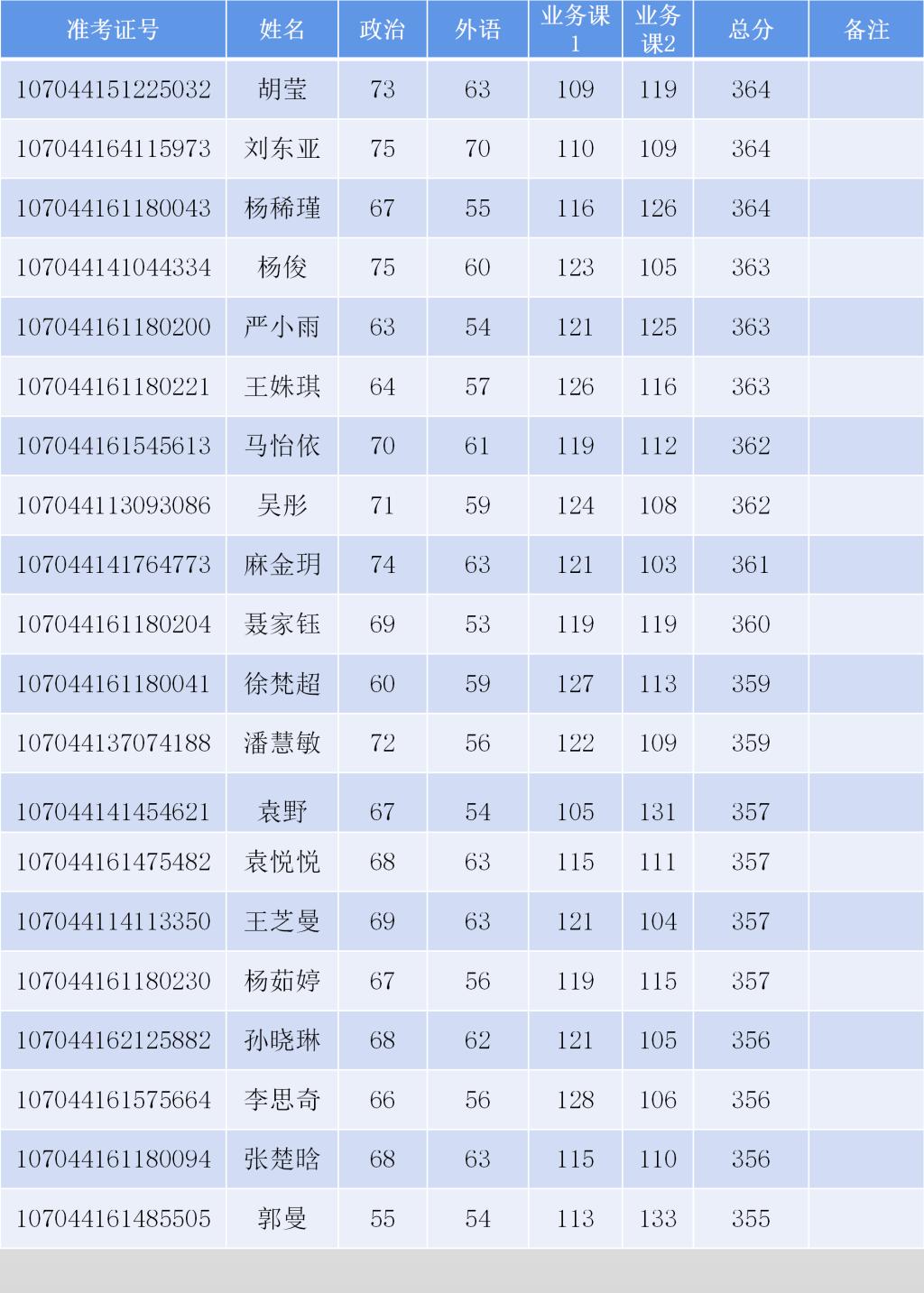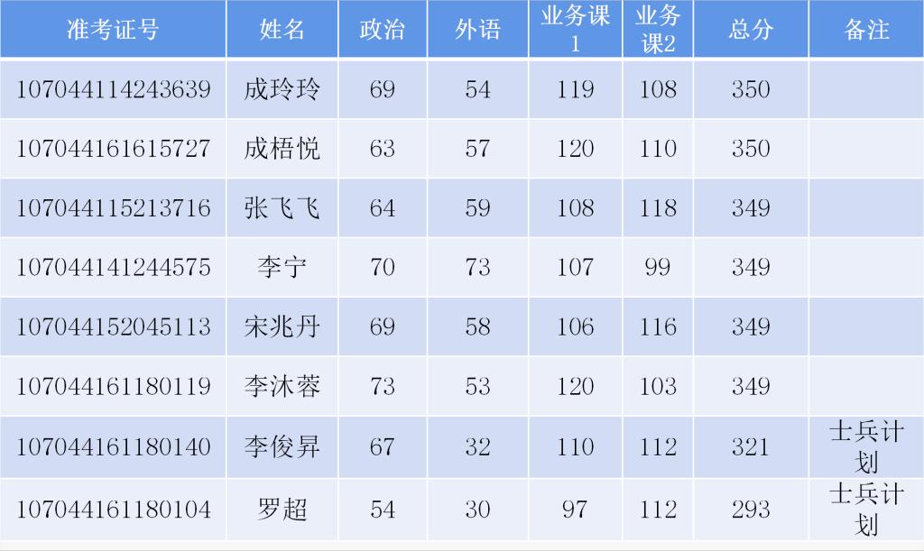 考生复试名单: