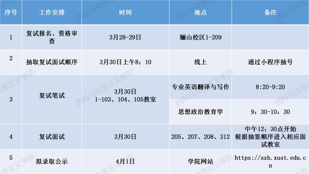 六、复试工作日程安排