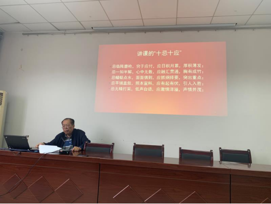 戎毓春教授从“进一步深化学校思政课教学改革、青年教师要做教学改革创新的先锋、增加‘反思性构建’意识探究研究型教学模式”三个方面结合习近平总书记“3.18”讲话精神及陕西高校思政课教学改革与创新的现状给学院全体教师和博硕士研究生分享了自己40多年来从事思政课教学的体会与经验,报告富有真知灼见,对提升beat365官网思政课教学实效性都具有重要的意义和作用。