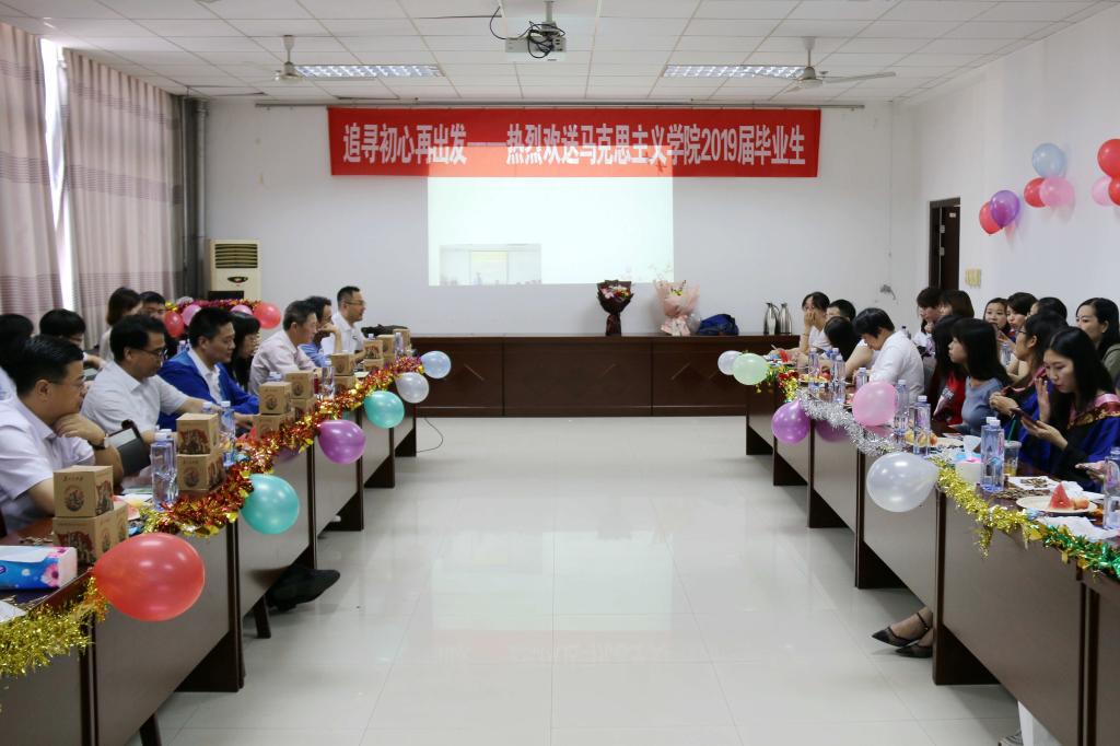 袁金群首先代表学院祝贺2019届36名硕士研究生、5名博士研究生顺利完成学业,希望全体毕业生们在新时代追寻初心,秉承“祖国利益高于一切”的校训,志存高远,奋发有为,努力在各行各业、各个领域作出卓越的成就,开创自己辉煌的未来。与会教师代表纷纷表达了对毕业生的祝福和希望。学院教授委员会主席李金勇教授说,各位同学生逢盛世,新时代是毕业生大显身手的舞台,希望能够追寻初心,行远思恩。之后,毕业生们结合在校期间的切身体会畅所欲言,言辞间始终洋溢着对母校深深的眷恋与热爱之情。博士毕业生高晶华以底气、才气、锐气;信仰、信心、信物;灯塔、梯子、引擎三组主题词进行发言时说,马克思主义和真理的光芒给予我们底气;是思想灵魂陶冶、学院倾爱教诲赋予我们才气;是诗书满腹、利剑在手赐予我们锐气。因此,我们要更加坚定实现中国梦和共产主义的崇高信仰;不断增强以人民为中心弘志报国的强大信心;格外珍视离别母校赠与的信物——茶杯,提示我们金杯银杯不如百姓的口碑,提示我们饮水思源、睹物思人,提示我们苟富贵、勿相忘,常忆师恩,常回母校。各位恩师是灯塔,照耀我们逐梦远方;是梯子,辅助我们登高远望;是引擎,引领我们展翅翱翔,走遍天涯,永志牵挂。一路真心伴我们左右的只有中国共产党。立党为公,执政为民,98载风雨同行。中国共产党永远在您身边。最后祝大家似锦前程、无问西东、永葆年轻!。beat365英国官网网站研究生会主席赵继琛代表在校生在发言时说,校园里有属于大家青春年华的点滴回忆,还有大家拼搏历程的见证。作为学弟学妹们,将会努力紧跟步伐,夯基础、全力以赴,有超越、再创辉煌!无论学长学姐走向何方,恩师的期望、母校的祝福永伴身旁。