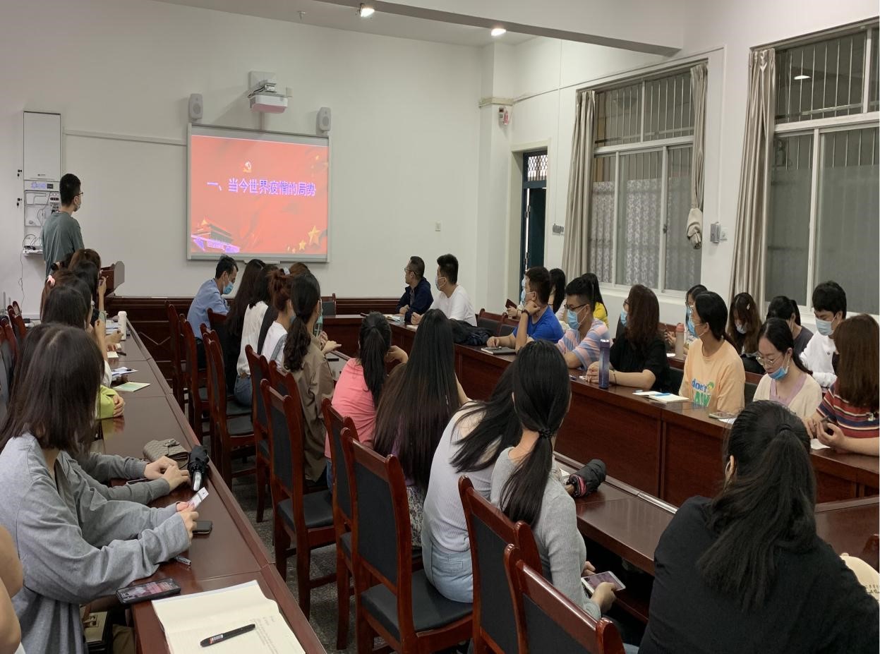 为切实做好疫情防控工作,确保学生返校后学习生活顺利进行,8月19日下午,beat365英国官网网站组织2019级全体研究生集中学习防疫知识。学院党委书记袁金群主持本次学习活动,辅导员韩帅主讲“开学第一课”,要求学生严格遵守学校各项纪律,务必克服麻痹松懈心理,养成良好卫生习惯,落实落细防控措施,树立优良班风学风,集中精力做好课程学习和科学研究工作。