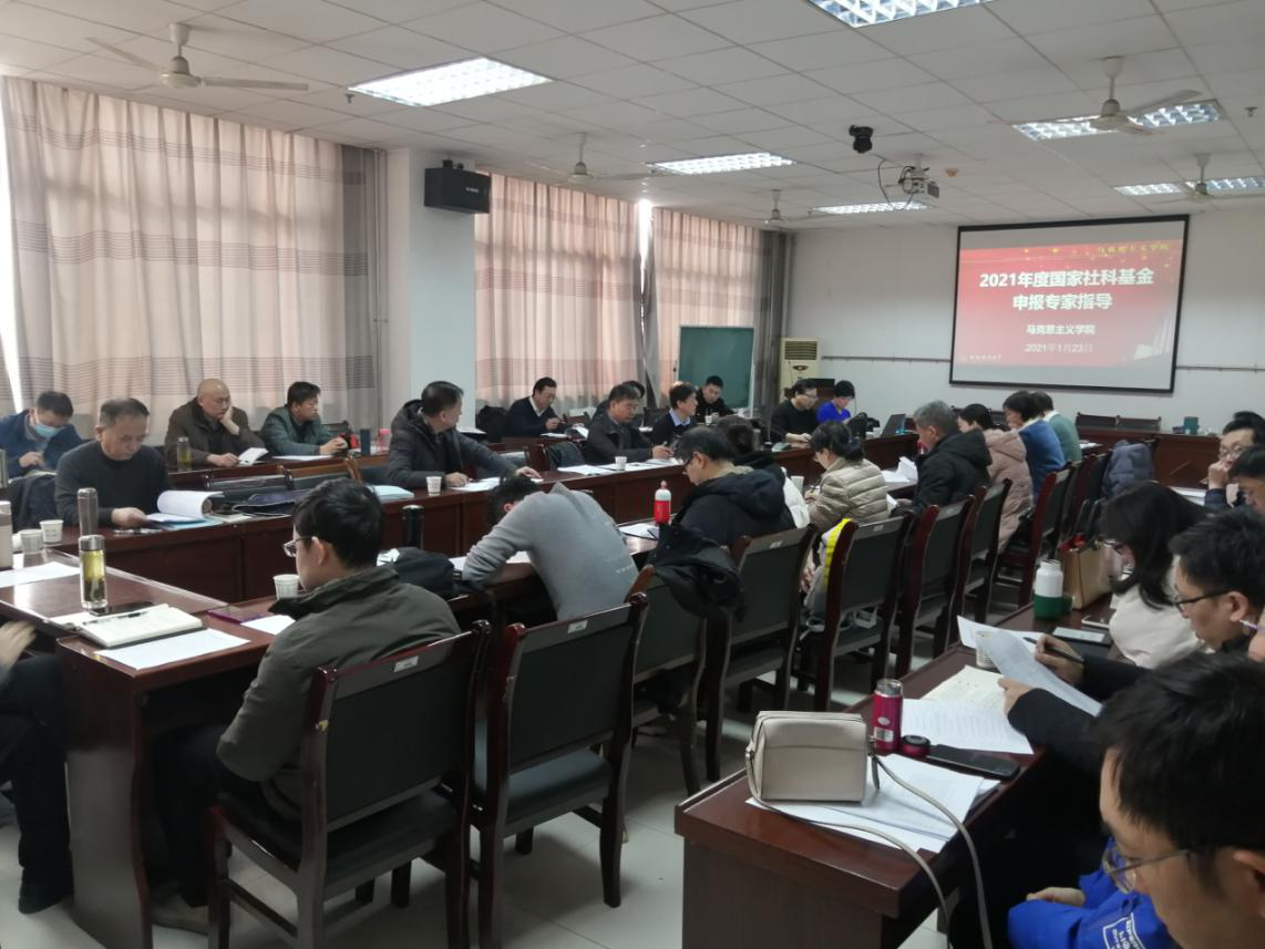 1月23日,学院举办2021年度国家社科基金项目申报指导会。学院邀请陕西师范大学beat365英国官网网站袁祖社教授、西北政法大学马克思主义教育学院院长刘进田教授为项目申报做现场指导,院党委书记卫晓君、院长高振岗、副院长张铭钟以及项目申报教师、青年教师等参加了会议。