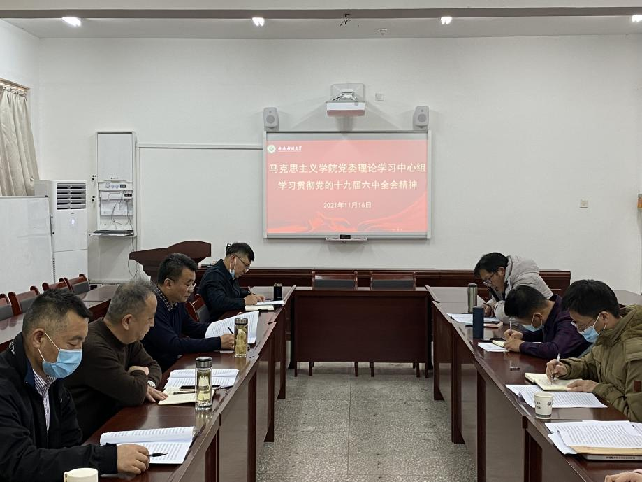 2021年11月12日上午学院师生集体观看十九届六中全会新闻发布会。会后,学院安排各教研室尽快召开集体备课会并制定“三进”方案。11月16日下午,学院党委书记卫晓君主持专题学习会议,学校思想政治理论课建设工作领导小组副组长、校党委副书记樊建武与学院班子成员和各教研室主任参加学院组织的学习贯彻十九届六中全会精神专题会议,各教研室主任就全会精神融入课程进行了发言。樊书记强调要自觉把思想和行动统一到全会精神上来,并就“三进”、专题学习、研究阐释、宣讲等进行了动员部署,学院副院长张铭钟做了具体安排。学院党委书记卫晓君要求各教研室要充分发挥每一位教师的主动性和积极性,坚持立德树人,开展集体备课、集体研讨,共同研究“三进”方案,努力提高教师的教学能力和水平,保证“三进”工作的质量和效果。