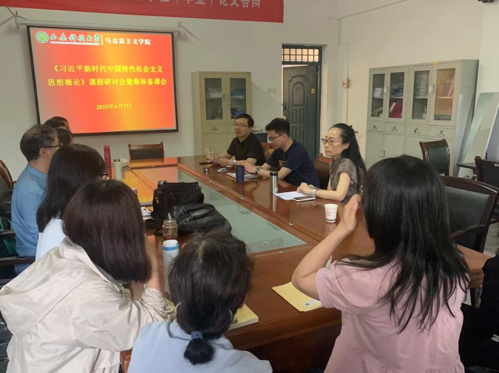 2023年6月7日下午,教研室在临潼校区骊山校园1-208会议室召开课程建设暨集体备课会,全体老师参加会议。会议全面总结交流自今年4月份召开的校领导、党委委员与《习近平新时代中国特色社会主义思想概论》全体任课教师参加的集体备课会之后的教学体会,及时传达学习校党委书记蒋林、校党委副书记樊建武一行到beat365英国官网网站开展调研的讲话精神,就近期课堂教学效果、实践环节教学进度、期末考试内容分布和题型设计等方面,展开了集中研讨。