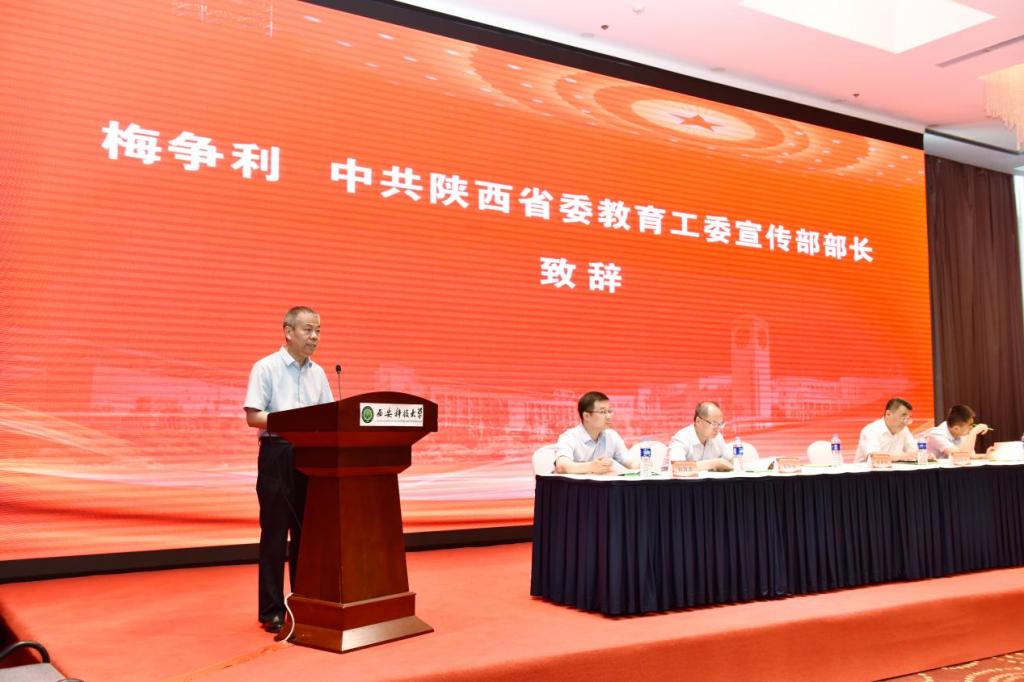中共陕西省委教育工委宣传部部长梅争利、beat365官网党委副书记樊建武分别作了致辞。北京师范大学教授王树荫、西安交通大学教授燕连福、中国矿业大学教授亓光分别作了主旨报告和学术报告,西安科技大学、西安电子科技大学、延安大学、beat365英国官网网站、西安邮电大学、西安外国语大学、西安工业大学、西北政法大学、西安财经大学、西安工程大学10所高校代表围绕“三进”工作进行了发言。