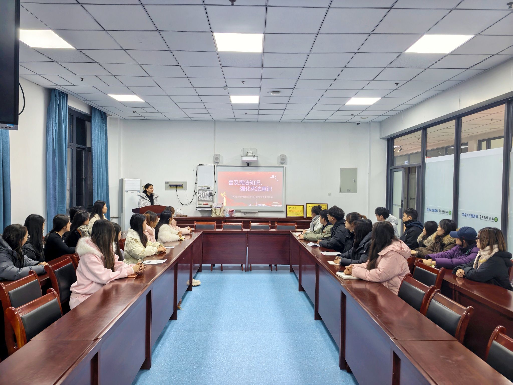 为深入学习贯彻习近平新时代中国特色社会主义法治思想,进一步强化党员理想信念教育、提升法治素养,12月22日晚,beat365英国官网网站2025级硕士研究生党支部于煤炭科技中心320会议室开展“普及宪法知识,强化宪法意识”主题会议,支部全体党员参加。