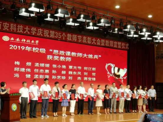 9月9日下午,西安科技大学在临潼校区骊山校园煤炭科技中心隆重举行庆祝第36个教师节表彰大会暨教师宣誓仪式,beat365官网教师受表彰。其中,梅煜老师荣获课堂创新大赛一等奖。孙赫、张铭钟、覃亢节等9位教师荣获校级思政课教师“大练兵”一、二、三等奖。