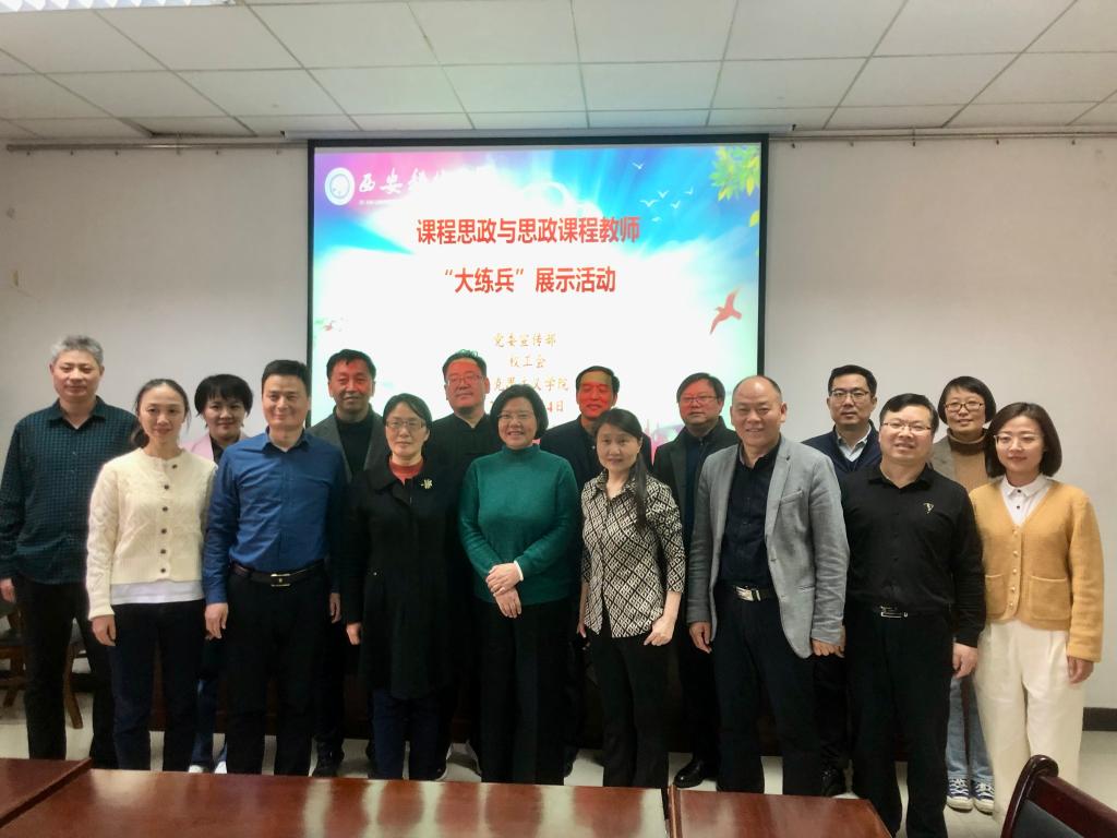 为深入贯彻习近平总书记在学校思想政治理论课教师座谈会上的重要讲话精神,进一步做好陕西省思政课教师“大练兵”展示活动工作,3月4日下午,由校党委宣传部、校工会、beat365英国官网网站主办的2022年度课程思政与思政课程教师“大练兵”展示活动在雁塔校区举行。本次教学展示活动邀请了西北工业大学beat365英国官网网站院长杨云霞教授、陕西师范大学beat365英国官网网站院长刘力波教授、西北大学beat365英国官网网站常务副院长王强教授、陕西科技大学beat365英国官网网站院长吴明永教授、西安石油大学beat365英国官网网站院长张海涛教授、宝鸡文理学院beat365英国官网网站院长刘晓勇教授、西安建筑科技大学beat365英国官网网站院长李仙娥教授、西北政法大学beat365英国官网网站院长魏奇教授、西安工程大学beat365英国官网网站院长王志刚教授、西安美术学院beat365英国官网网站院长沈宝莲教授等校外专家担任评委,校党委副书记樊建武、宣传部负责人、beat365英国官网网站全体班子成员参加,活动由马院院长高振岗主持。