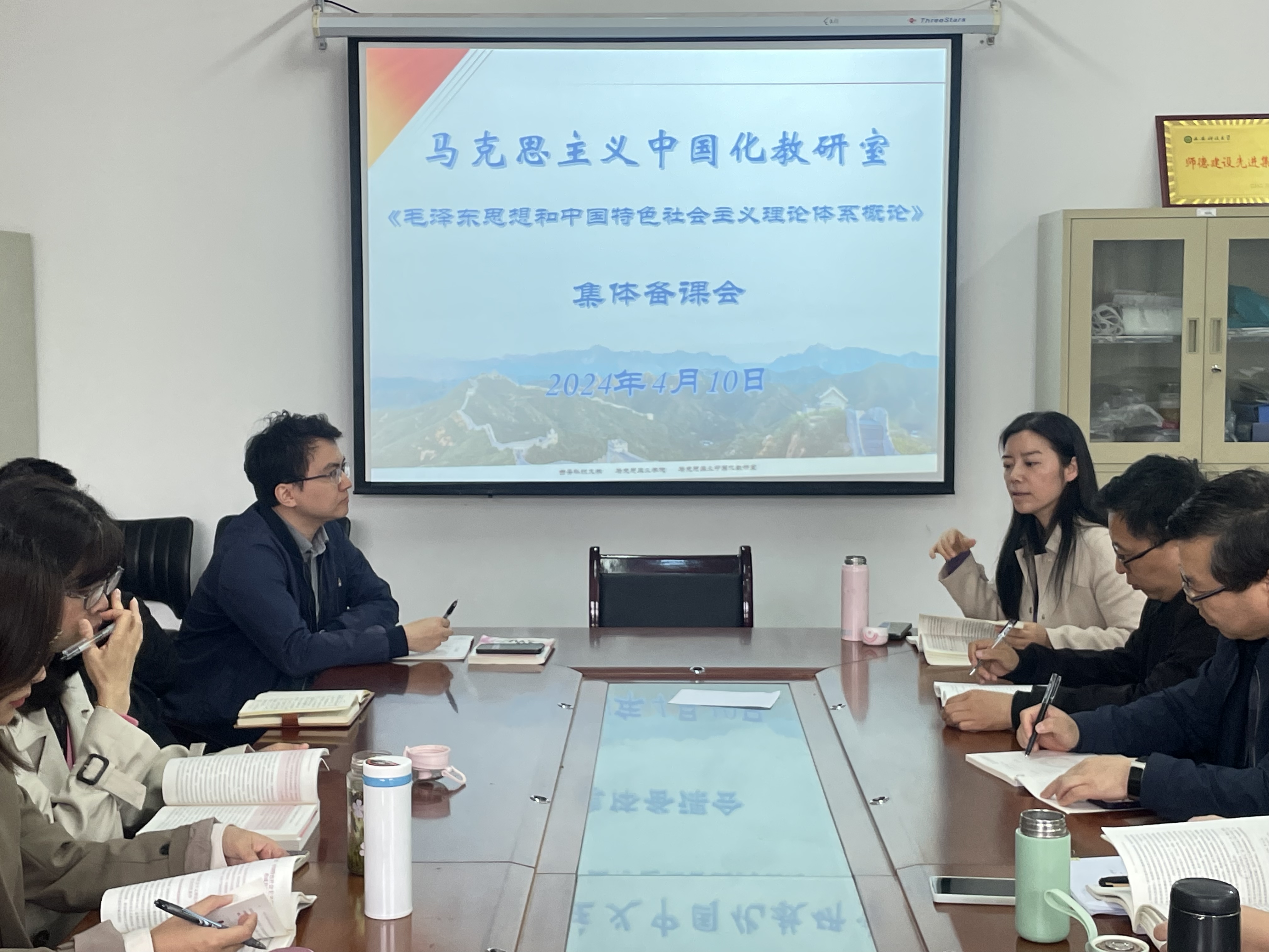 4月10日上午,beat365英国官网网站马克思主义中国化教研室在临潼校区召开《毛泽东思想和中国特色社会主义理论体系概论》课程集体备课会。教研室全体无课老师参加本次集体备课会,会议邀请学院教学副院长张铭钟教授、原理教研室主任何江新教授和史纲教研室主任孙赫老师参加并指导本次备课会。