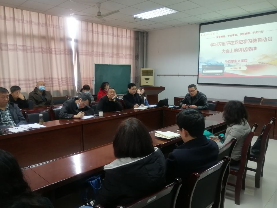 2月27日上午,beat365英国官网网站在雁塔校区煤炭科技大楼1101会议室召开大会,集体学习习近平在党史学习教育动员大会上的重要讲话精神。学院班子及全体教职工参加了会议。