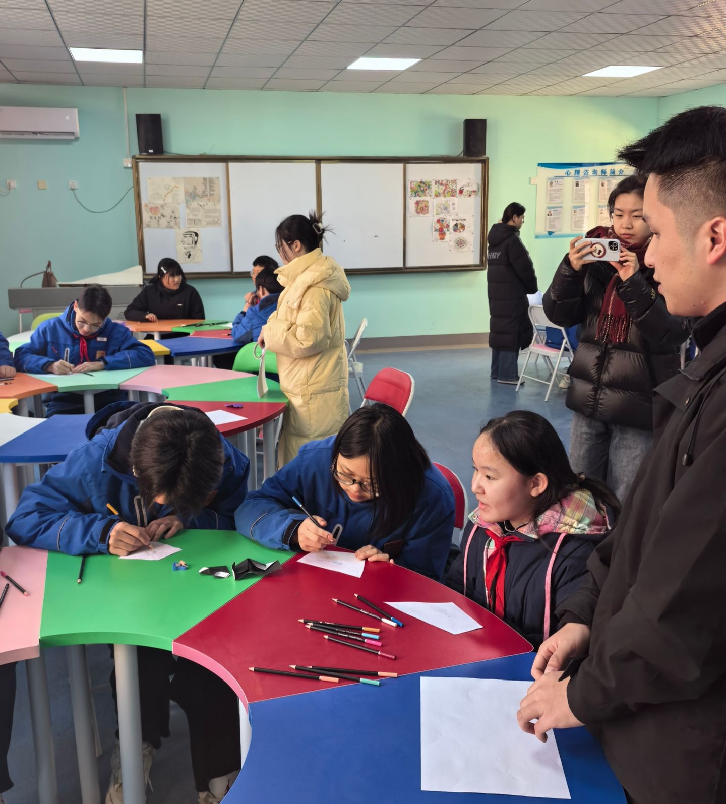 “沉浸式的创作与互动,能让孩子们在动手实践中沉淀心灵、释放压力,潜移默化地培养了他们的沟通能力、协作意识与包容心态,引导树立积极向上的世界观、人生观与价值观。”指导老师陈霂介绍道。骊山中学相关负责人表示衷心感谢:“这样的志愿活动新颖丰富,不仅契合少年儿童的身心发展特点,还为校园心理健康教育工作提供了有力补充,期待在未来深化合作,共护孩子们健康成长。”