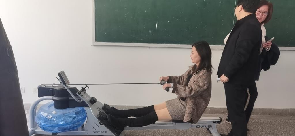 庆祝活动在在临潼校区骊山校园学院工会活动室举行。参加比赛的老师们热情高涨,有的下象棋,有的下五子棋,有的划陆地划船机……女老师们巾帼不让须眉,无论是棋类比赛,还是其他比赛项目都不落下风,活动现场气氛愉快而热烈。