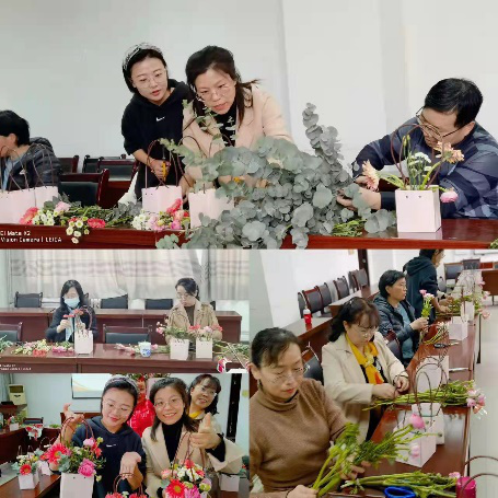 阳春三月,鸟语花香,为了庆祝第112个“三八”国际劳动妇女节,丰富女职工的业余文化生活,提升审美修养,展示新时代女性的精神风貌,3月5日下午,beat365英国官网网站分工会组织了“‘师‘情’花‘艺,绽放风采”花艺沙龙,邀请专业花艺师为女教工进行插花培训。