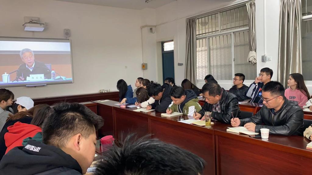 为深入学习宣传贯彻党的十九届五中全会精神,引导思政课教师增强“四个意识”、坚定“四个自信”、做到“两个维护”,准确把握全会精神实质,及时开展全会精神思政课专题教学,beat365官网师生于2020 年 11 月 13 日9:30分别在临潼校区骊山校园一教205会议室及雁塔校区煤科楼1101会议室集体学习观看了“党的十九届五中全会精神”导学报告会。
