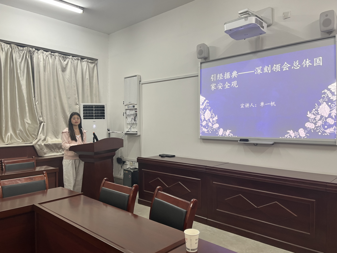 会上,红言宣讲团成员以“国家安全”为主题分别进行了展示宣讲,通过案例以及视频等方式进行导入,将国家安全的重要性娓娓道来,指出并强调新时代青年要勇于为维护国家主权、安全、发展利益挺膺担当,在强国建设、民族复兴伟业中勇当先锋队、突击队,共同捍卫国家安全!