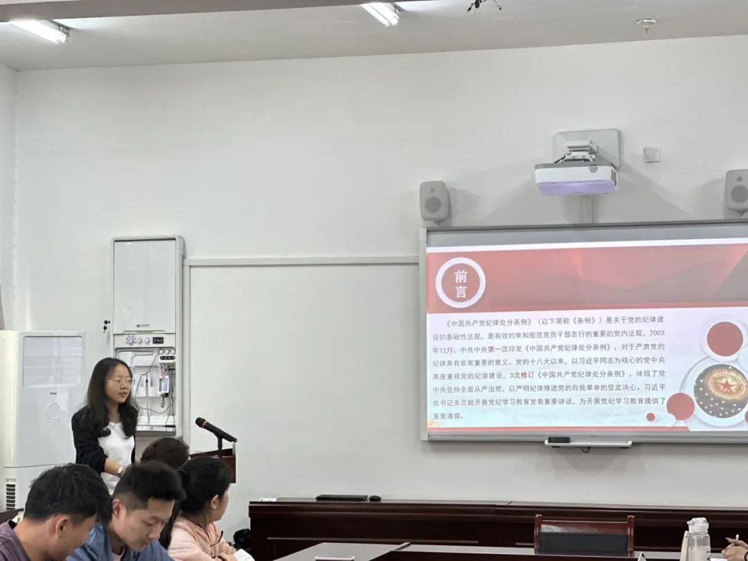 会议伊始,六名宣讲团成员进行试讲,本次会议紧跟时事,宣讲主题紧密围绕党纪学习教育和“两弹一星”精神展开。六名宣讲团成员立足现实,围绕主题,结合具体情况,为大家进行了声情并茂、富有感染力的试讲。不仅有利于引导广大青年党员,将党规党纪内化于心、外化于行,争做新时代合格党员,同时也激励广大青年学习和弘扬“两弹一星”精神,为实现中国式现代化奋勇前进。