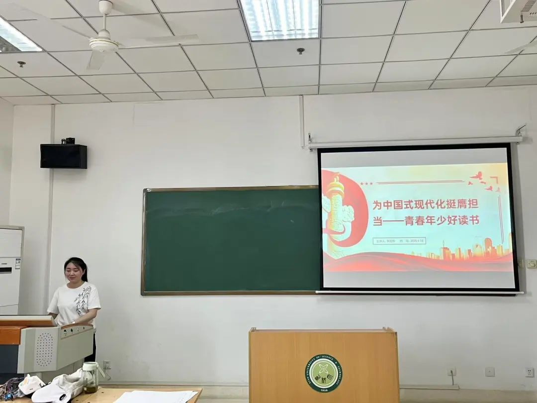 活动伊始,李凤铃同学点明了阅读对于青年成长以及在中国式现代化进程中发挥积极作用的重要意义。她提到,在当今时代,丰富的知识储备是青年投身社会建设的关键基石,只有通过广泛阅读,才能不断拓宽视野、深化思想认知。随后,杨登清同学分享了一些适合青年阅读的经典书目,涵盖历史、政治、文化等多个领域,并详细介绍了这些书籍的核心观点与学习价值。
