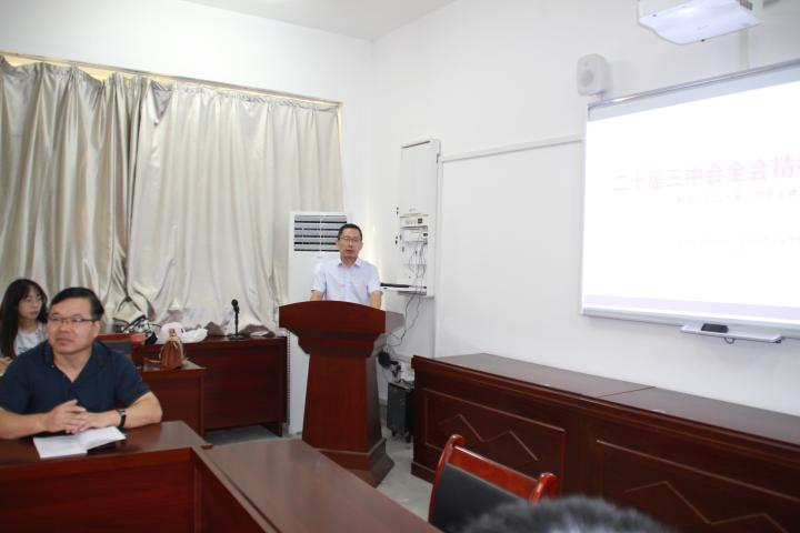 9月11日上午,beat365英国官网网站在1教205学院会议室开展学习贯彻党的二十届三中全会精神宣讲活动。beat365英国官网网站学科带头人裴恒涛教授宣讲,院长高振岗主持,学院副院长张铭钟、铁锴,学工干部、师生代表,全体学生党员参加。