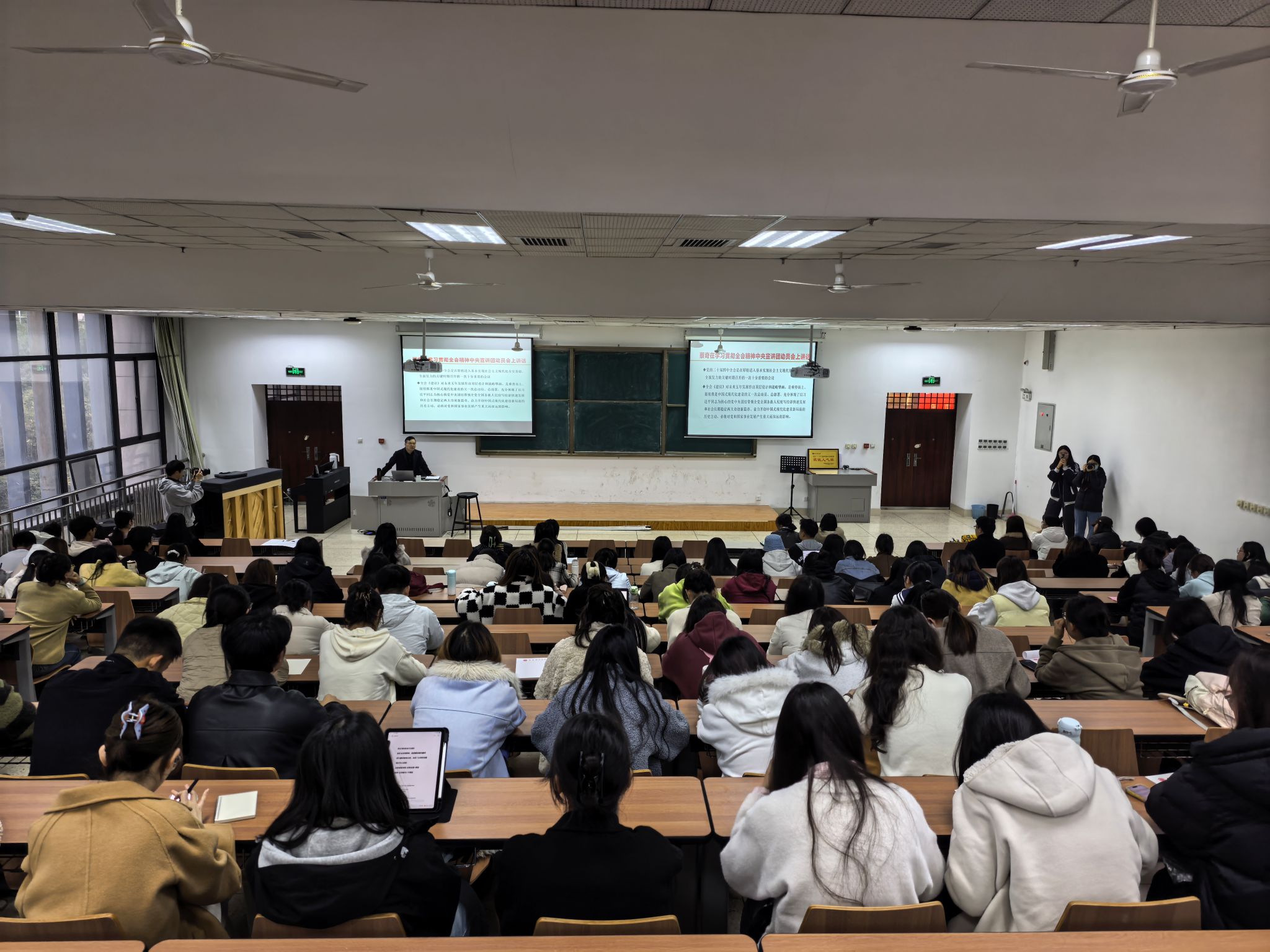 整场报告理论扎实、指引清晰,极大地激发了同学们的思想共鸣。大家纷纷表示,要将全会精神转化为强大的思想武器与行动指南,在深学细悟中担当理论传播的主力军,在知行合一中争做伟大事业的生力军,以青春之我为中国式现代化贡献智慧与力量。