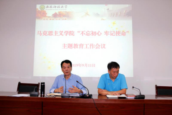 9月11日下午,beat365英国官网网站“不忘初心、牢记使命”主题教育工作会在雁塔校区学院会议室顺利召开。学院党委书记袁金群、院长高振岗、教工支部全体党员以及研究生党支部各支部委员参加了动员大会。高振岗主持会议。