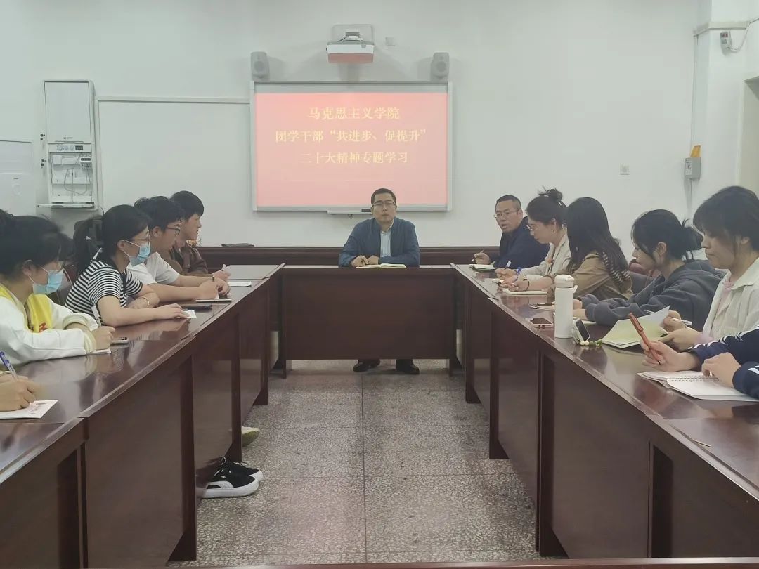 今年是全面贯彻落实党的二十大精神的开局之年。为掀起学习宣传贯彻热潮,引导广大学生认真学、全面学、透彻学,踔厉奋发、勇毅前行,为谱写高质量发展新篇章贡献力量。beat365英国官网网站团学干部“共进步、促提升”党的二十大精神专题学习于2023512日在1号教学楼205会议室举行。全体团学干部参加此次学习会议,党委书记贾哲出席会议。会议由beat365英国官网网站团委书记韩帅主持。