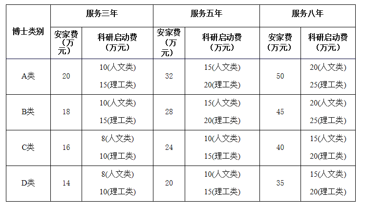 根据beat365官网急需紧缺程度、学术贡献、学术潜力等综合研判(45周岁以下,不含45周岁),酌情增加安家费3-10万(A类10万、B类8万、C类5万、D类3万),45周岁以下(不含45周岁)具有副教授职称的博士研究生增加5万元,安家费总额原则上不超过60万元,新入职博士前2年享受副教授岗位待遇。