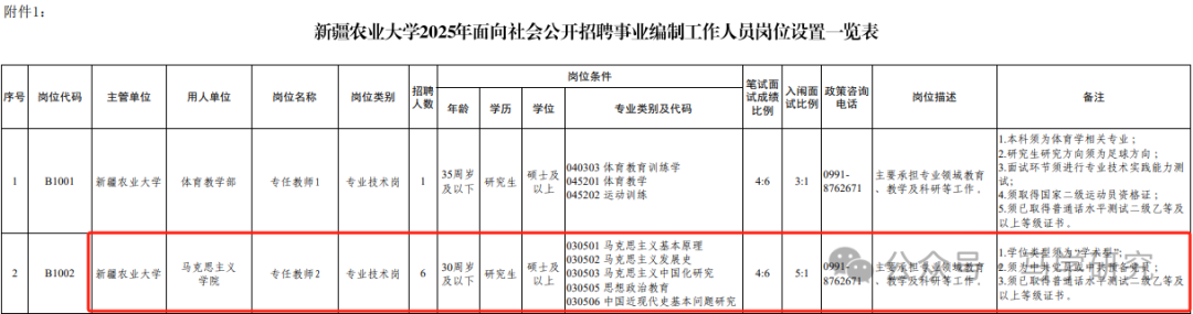 1.新疆农业大学2025年面向社会公开招聘事业编制工作人员岗位设置一览表(下载)