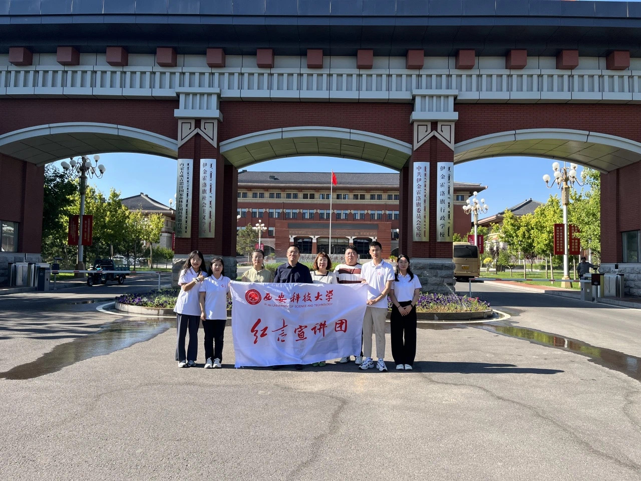 少年壮志凌云,青春挺膺担当。2024年暑假,红言宣讲团暑期实践队来到陕西延安、榆林、内蒙古、山西等地,瞻仰革命故居、参观现代化矿业生产,传承革命精神,激扬能源报国之志。宣讲团成员立足西安科技大学的院校特色和学科优势,以红色革命基因为依托,深入感悟延安精神,挖掘其时代价值。在内蒙古自治区鄂尔多斯市参观调研之际,红言宣讲团成员受邀走近中共伊金霍洛旗委党校交流学习,共沐思想之光。