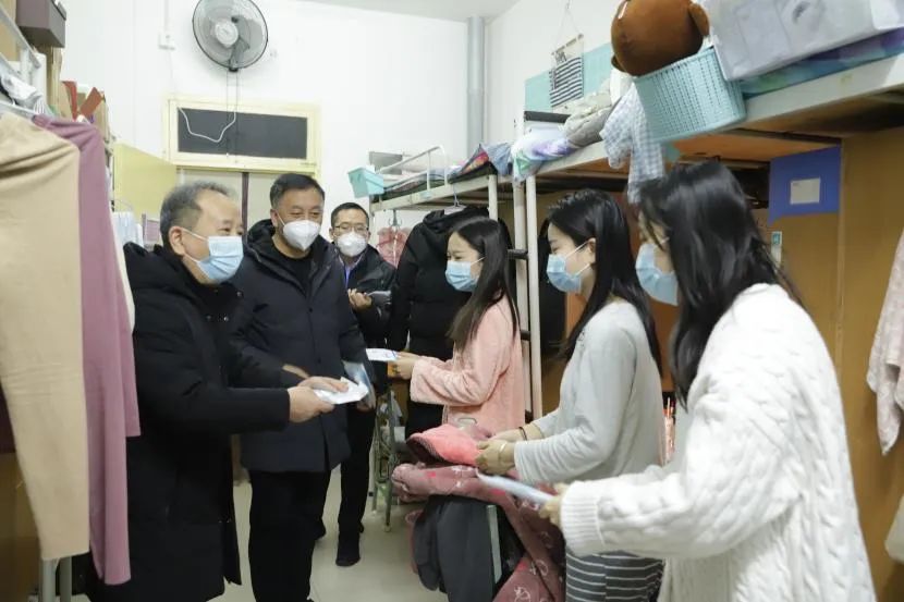 为进一步筑牢学院疫情防控屏障,守护马院学子平安健康,1月2日下午,beat365英国官网网站党委书记卫晓君、院长高振岗、学工办主任韩帅,深入学生宿舍发放防疫口罩。